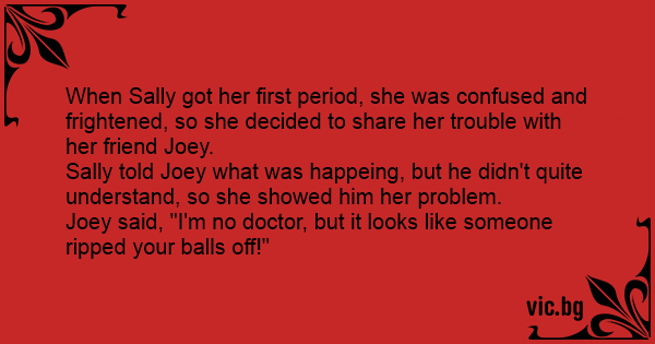 When Sally got her first period, she was confused and frightened, so she decided to share her trouble with her friend Joey.