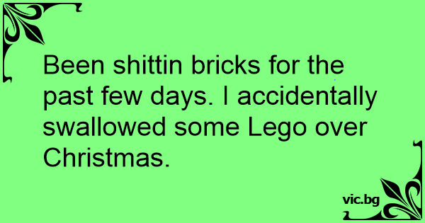 Been shittin bricks for the past few days. I accidentally swallowed some Lego over Christmas.