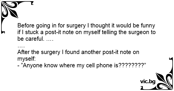 Before going in for surgery I thought it would be funny if I stuck a post-it note on myself telling the surgeon to be careful. ….