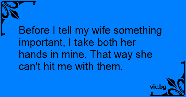 Before I tell my wife something important, I take both her hands in mine. That way she can't hit me with them.