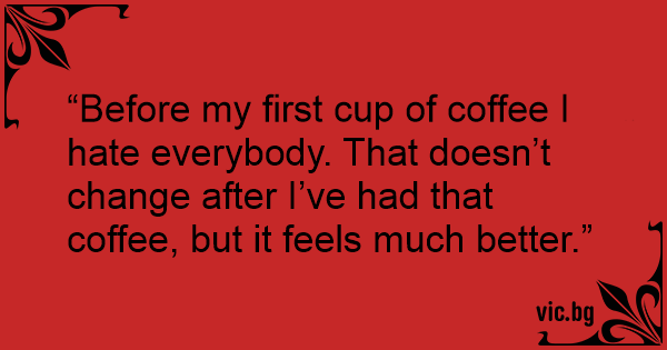 “Before my first cup of coffee I hate everybody. That doesn’t change after I’ve had that coffee, but it feels much better.”
