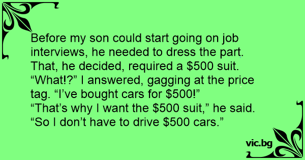 “That’s why I want the $500 suit,” he said. “So I don’t have to drive $500 cars.”