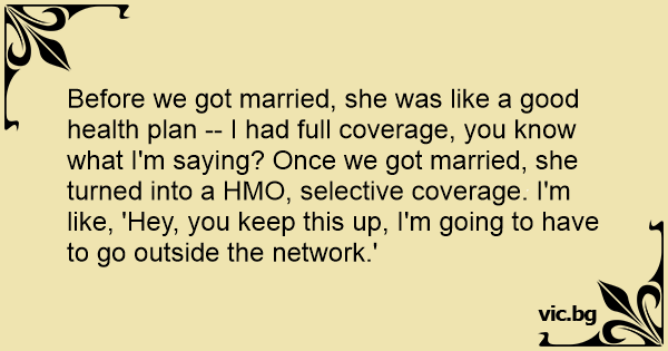 Before we got married, she was like a good health plan -- I had full coverage, you know what I'm saying? Once we got married, she turned into a HMO, selective coverage. I'm like, 'Hey, you keep this up, I'm going to have to go outside the network.'