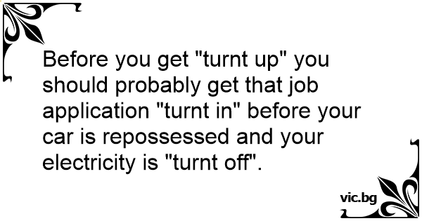 Before you get "turnt up" you should probably get that job application "turnt in" before your car is repossessed and your electricity is "turnt off".