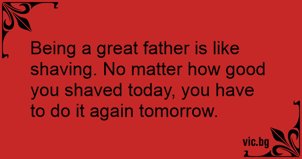 Being a great father is like shaving. No matter how good you shaved today, you have to do it again tomorrow.