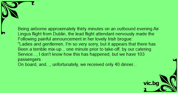 Lingus flight from Dublin, the lead flight attendant nervously made the