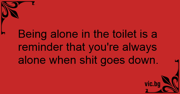 Being alone in the toilet is a reminder that you're always alone when shiт goes down.