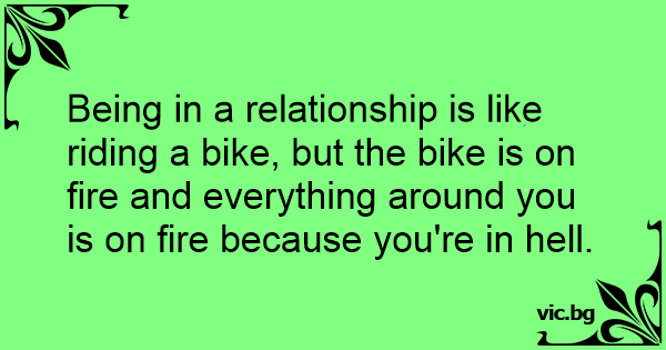 Being in a relationship is like riding a bike, but the bike is on fire and everything around you is on fire because you're in hеll.