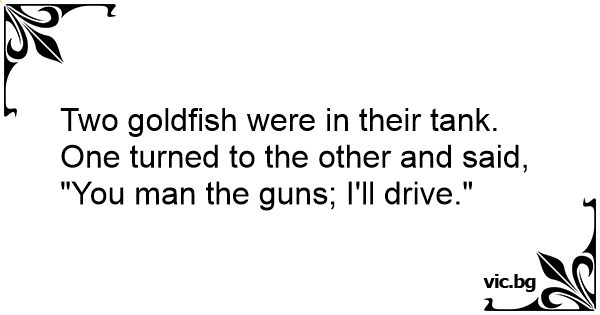 Two goldfish were in their tank. One turned to the other and said, "You man the guns; I'll drive."