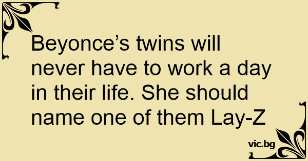Beyonce’s twins will never have to work a day in their life. She should name one of them Lay-Z