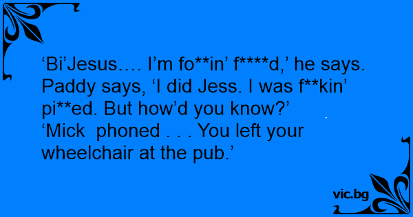 ‘Мiск phoned . . . You left your wheelchair at the pub.’