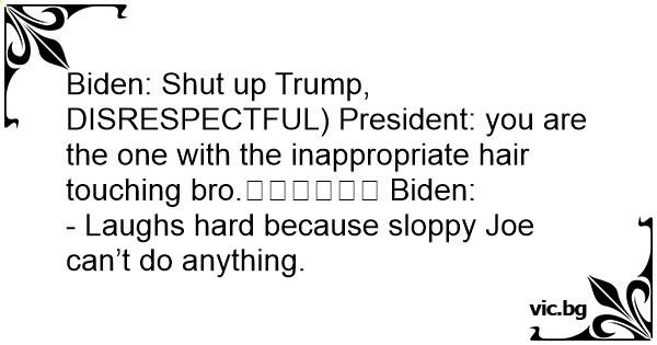 Biden: Shut up Trump, DISRESPECTFUL) President: you are the one with the inappropriate hair touching bro.😎😎😎😎😎😎 Biden: