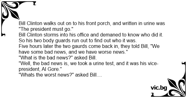 "Well, the bad news is, we took a urinе test, and it was his vice-president, Al Gore."