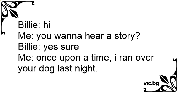 Me: once upon a time, i ran over your dog last night.