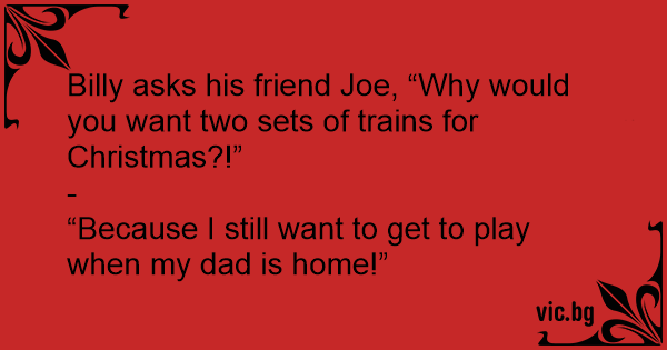 Billy asks his friend Joe, “Why would you want two sets of trains for Christmas?!”