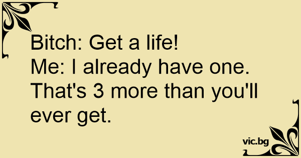 Bitch: Get a life! Me: I...