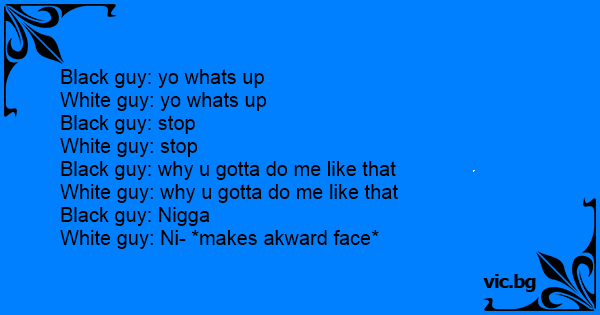 White guy: why u gotta do me like that