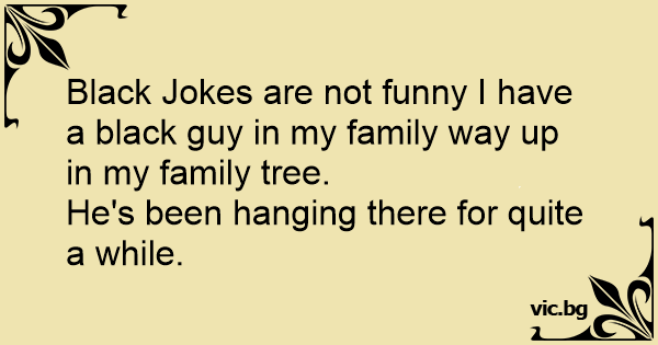 Black Jokes are not funny I have a black guy in my family way up in my family tree.