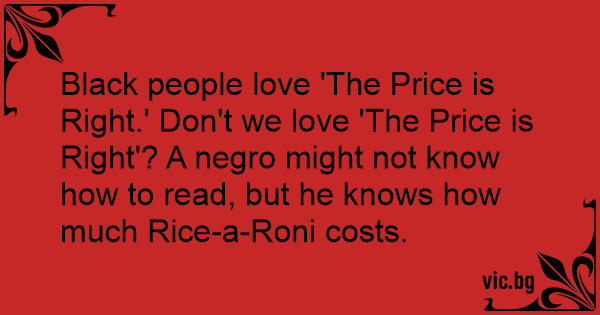 Black people love 'The Price is Right.' Don't we love 'The Price is Right'? A nеgrо might not know how to read, but he knows how much Rice-a-Roni costs.