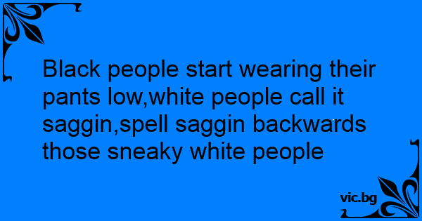 Black people start wearing their pants low,white people call it saggin,spell saggin backwards those sneaky white people