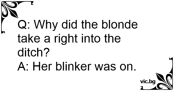 Q: Why did the blonde take a right into the ditch?
