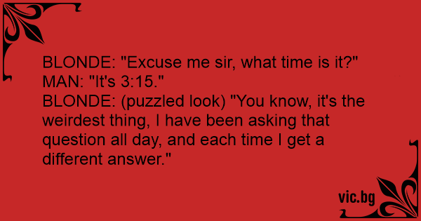 BLONDE: (puzzled look) "You know, it's the weirdest thing, I have been asking that question all day, and each time I get a different answer."