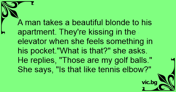 A man takes a beautiful blonde to his apartment. They're kissing in the elevator when she feels something in his pocket."What is that?" she asks.