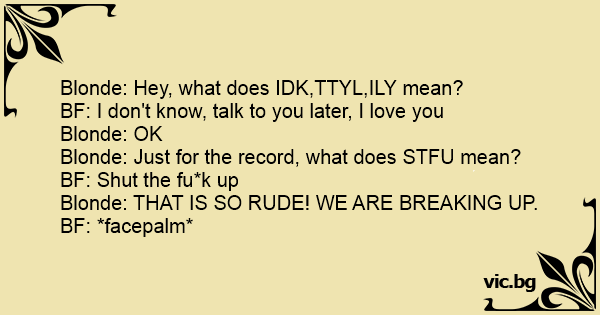 Blonde: Hey, what does IDK,TTYL,ILY mean?