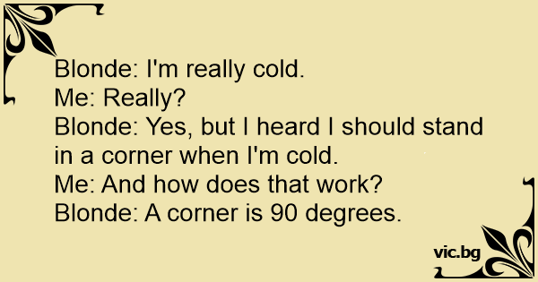 Blonde: Yes, but I heard I should stand in a corner when I'm cold.