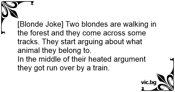 [Blonde Joke] Two blondes are walking in the forest and they come across some tracks. They start arguing about what animal they belong to.