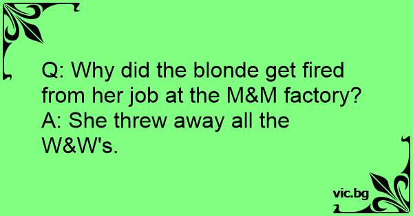Q: Do you know why the blonde got fired from the M&M factory? A: For throwing out the W's