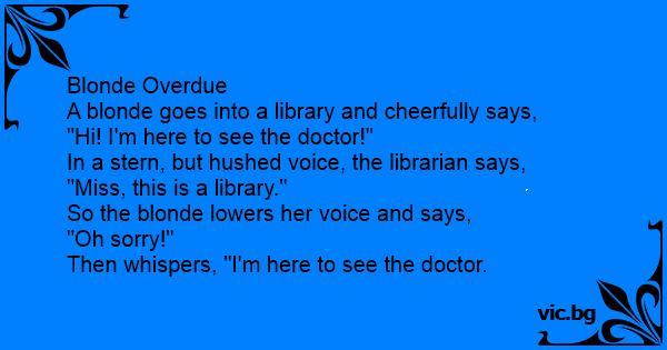 A blonde goes into a library and cheerfully says,