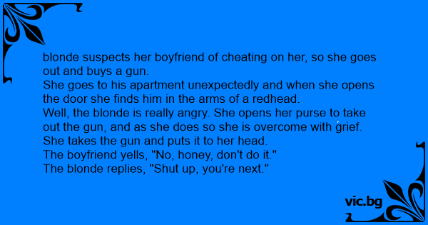 blonde suspects her boyfriend of cheating on her, so she goes out and buys a gun.