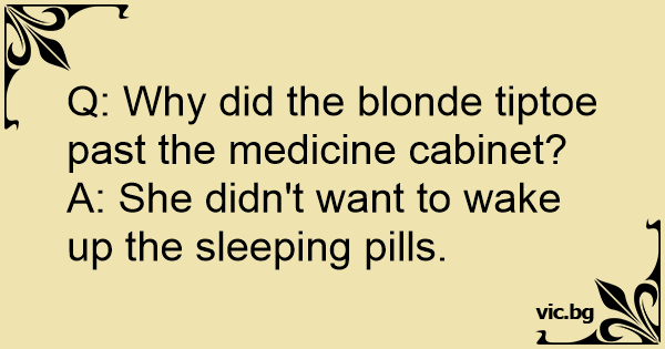 Warum gehen Blondinen immer auf Zehenspitzen an Medizinschränken vorbei? - Sie wollen die Schlaftabletten nicht aufwecken.