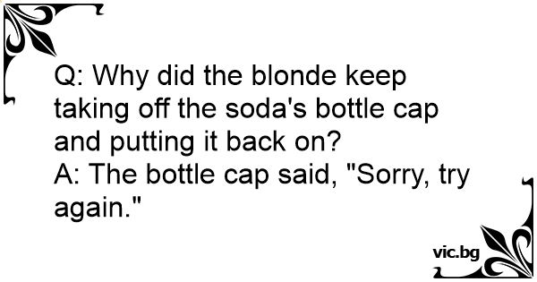 Q: Why did the blonde keep taking off the soda's bottle cap and putting it back on?