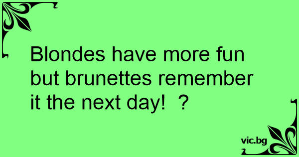 Blondes have more fun but brunettes remember it the next day! ?