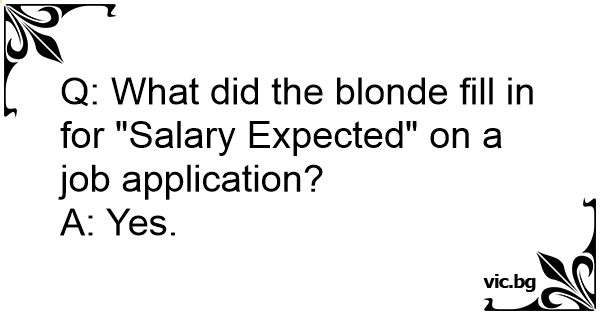A blonde was filling out a job application form. She quickly filled out the columns entitled: Name, Age, Address, etc. Finally, she came to the column: Salary Expected. She wrote, "YES."