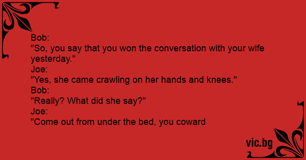 "So, you say that you won the conversation with your wife yesterday."