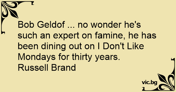 Bob Geldof ... no wonder he's such an expert on famine, he has been dining out on I Don't Like Mondays for thirty years.