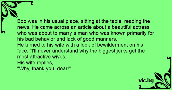 He turned to his wife with a look of bewilderment on his face. "I'll never understand why the biggest jerks get the most attractive wives."
