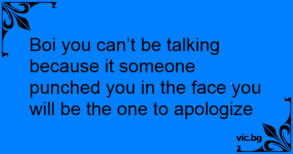 Boi you can’t be talking because it someone punched you in the face you will be the one to apologize