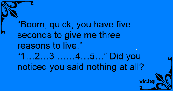 “Boom, quick; you have five seconds to give me three reasons to live.”