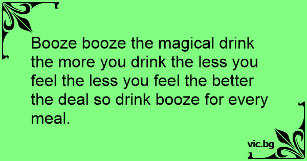 Вооzе вооzе the magical drink the more you drink the less you feel the less you feel the better the deal so drink вооzе for every meal.