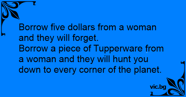 Borrow a piece of Tupperware from a woman and they will hunt you down to every corner of the planet.