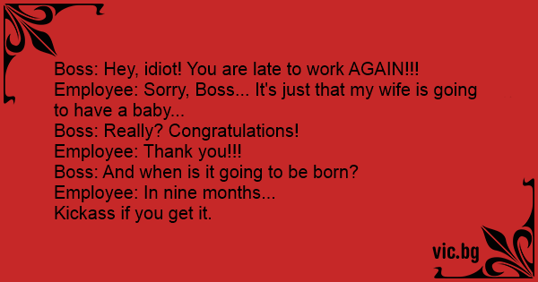 Boss: Hey, idiот! You are late to work AGAIN!!!
