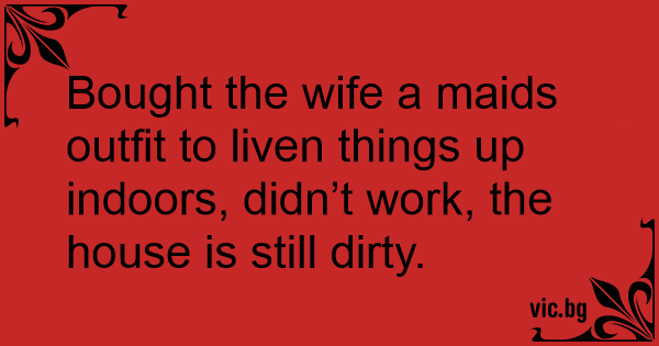Bought the wife a maids outfit to liven things up indoors, didn’t work, the house is still dirтy. 0 0 0 Office and Work Jokes Marriage and Family Jokes
