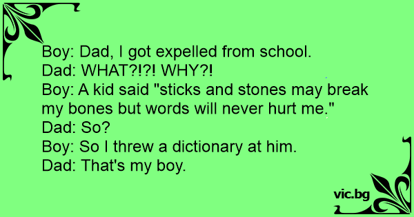 Boy: A kid said "sticks and stones may break my bones but words will never hurt me."
