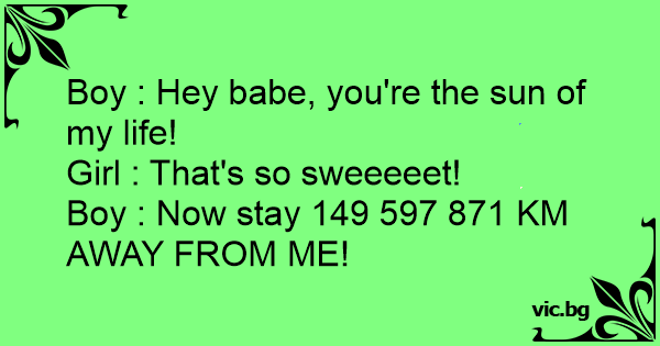 Boy : Now stay 149 597 871 KM AWAY FROM ME!