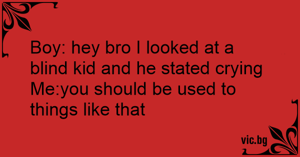 Boy: hey bro I looked at a blind kid and he stated crying