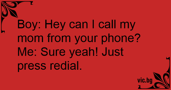 Boy: Hey can I call my mom from your phone? Me: Sure yeah! Just press redial.